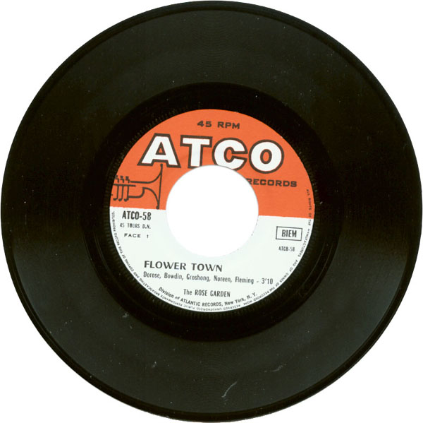 French picture sleeve and single. In France, "Flower Town" was the A-side.