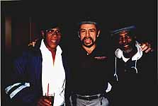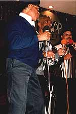 CLICK THUMBNAIL TO SEE FULL-SIZE PHOTOGaynel Hodge & The Turks were next. Now get this lineup: Tony "Nite Owl" Allen, George Grant (of The Castelles) and Carl Green (the original Johnny of Marvin & Johnny, as well as the composer of "Hey Senorita" (the flipside of The Penguins' "Earth Angel" (cowritten by Gaynel Hodge). Gaynel went through most of his '50s songs with The Hollywood Flames and The Turks, including "I'm a Fool" and "Fathertime." George sang one of his popular numbers, "My Girl Awaits Me," and Tony of course sang the always popular "Nite Owl," which always gets the crowd going. There were some favorites yet to be sung, but Gaynel and crew was saving them for the next set.
