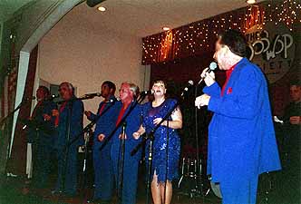 Show #40, held at Long Beach's Petroleum Club on Saturday night, May 4, 2002, will go down as one of the most low-key concerts in the thirteen years of the Doo-Wop Society. Only one act, The Five Boroughs from Florida, was on the bill, backed by its own band of musicians. Attendance was light, no more than 200 people, perhaps because The Five Boroughs performed at an earlier DWS show (#27) in early 1998. As usual, the music was fantastic.