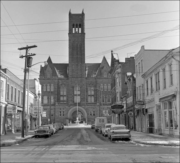 Looking toward the courthouse from Juliana Street on February 21, 1968. Within
