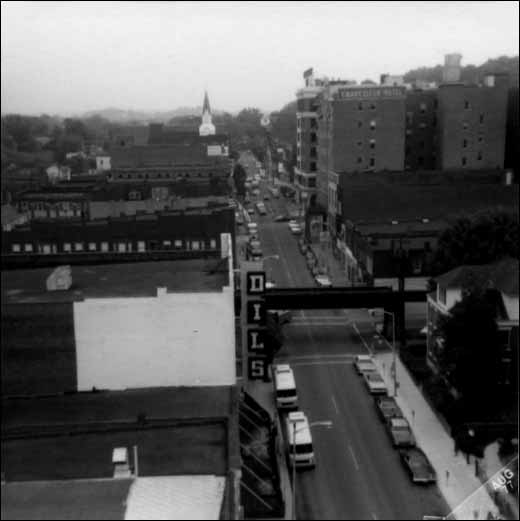 Looking north on Market toward the Sixth Street railroad bridge from the cupola of the City Building.