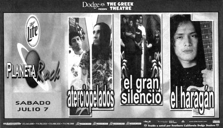 ATERCIOPELADOS IN LOS ANGELES 2001 newspaper ad for July 7, 2001, show at Greek Theatre (version 1)