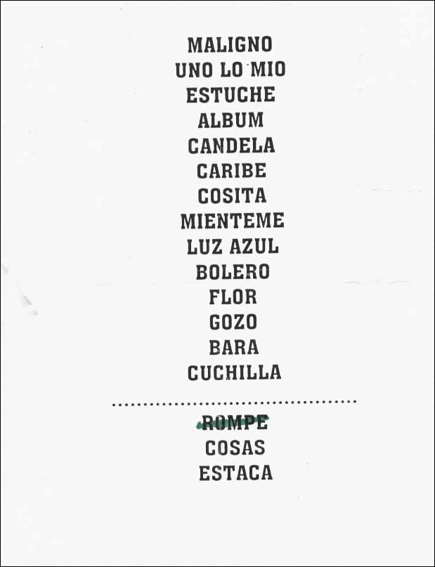 ATERCIOPELADOS IN LOS ANGELES 2001 set list from April 5, 2001, show at Knitting Factory in Hollywood