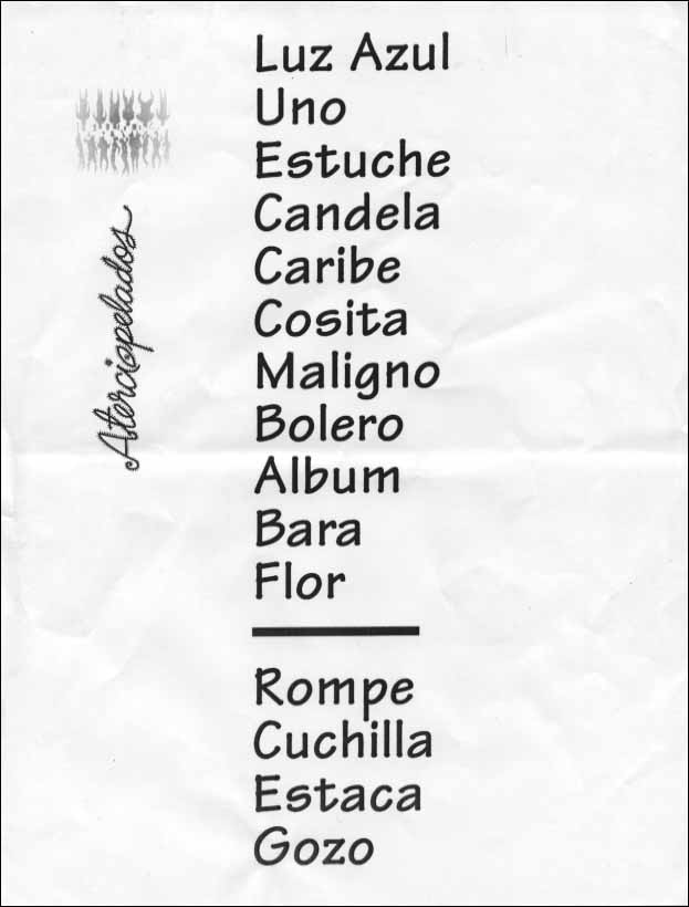 ATERCIOPELADOS IN LOS ANGELES 2001 set list from October 28, 2001, show at the JC Fandango nightclub in Anaheim