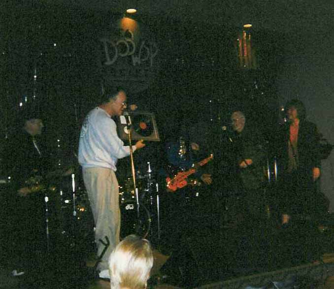 Jim presents a special Southern California Doo-Wop Society award to legendary disk