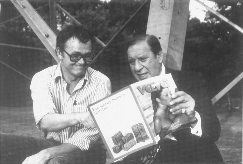 Jim and Henny Youngman discuss the finer points of girlie magazines in 1981, while working on a comedy bit together.