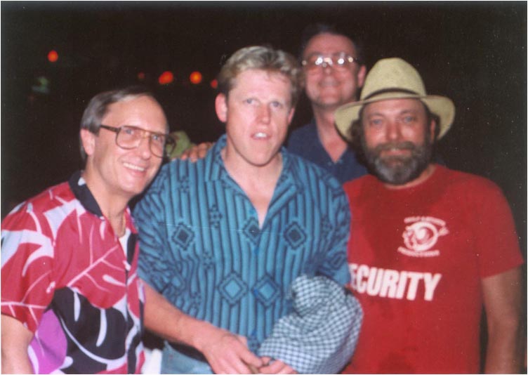 Jim hovers like the ghost of Buddy Holly behind Gary Busey, Crickets drummer Jerry Allison (right),