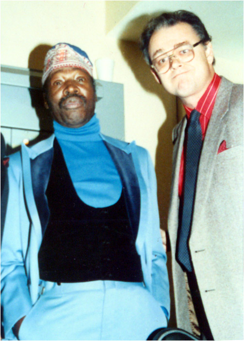 Jim hangs with comedian Rudy Ray Moore, a.k.a. Dolemite, in 1988.