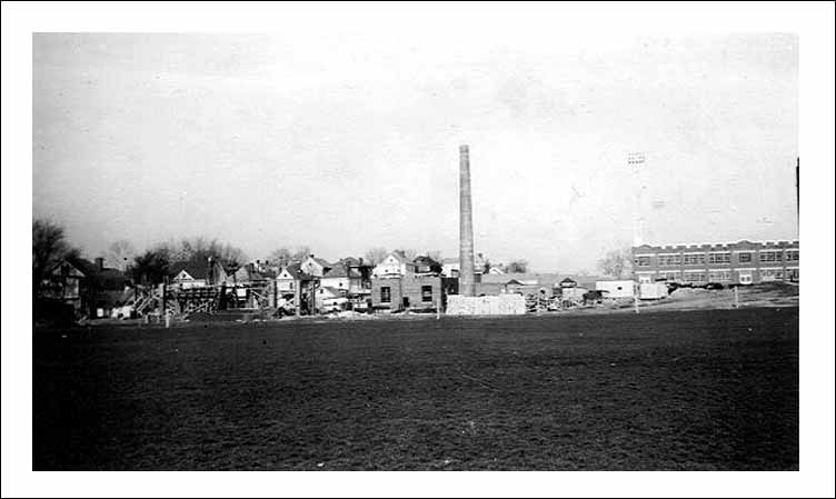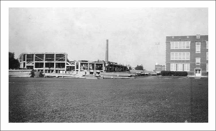 Construction begins for the PHS Field House in early 1950 (above); by October it was already taking shape (below). |