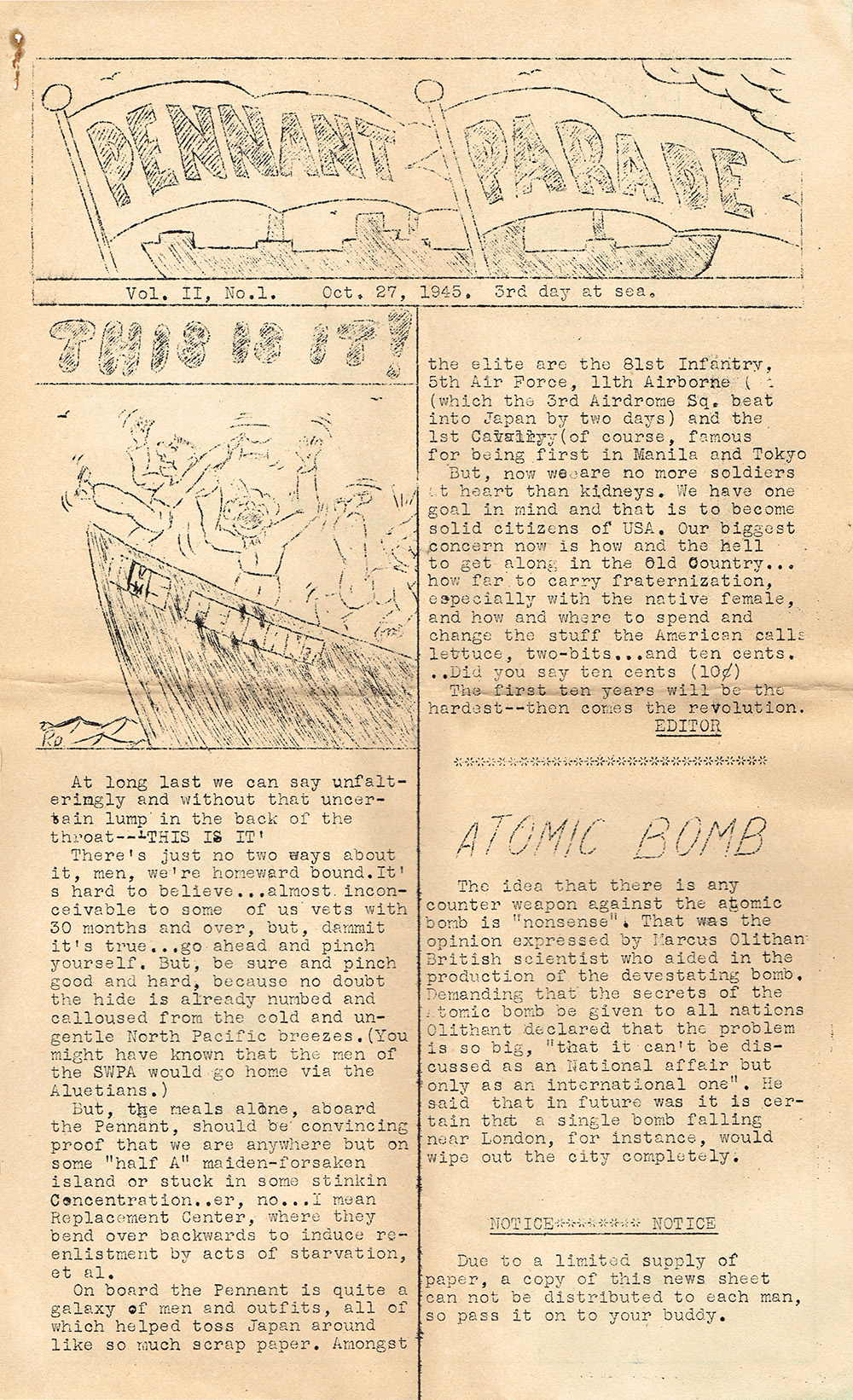 1945 3rd day at sea.