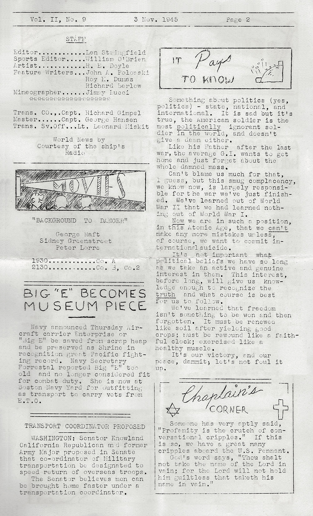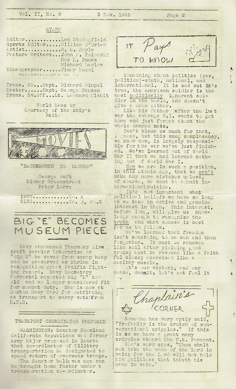 Vol. II, No. 9 3 Nov. 1945 Page 2
