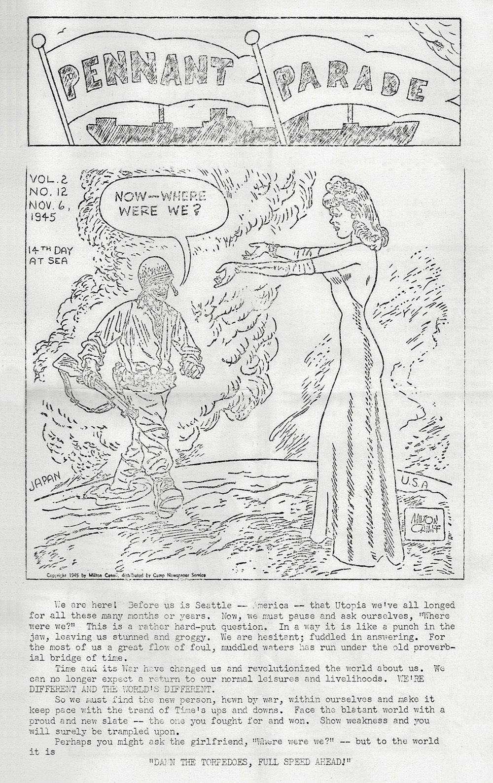 [cartoon caption: "NOW - WHERE WERE WE?" (Milton Caniff)]