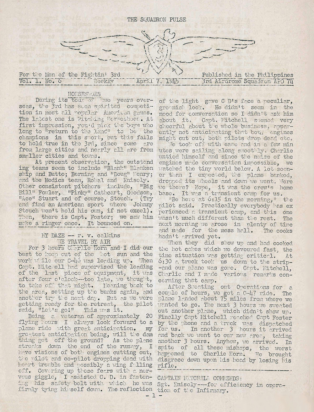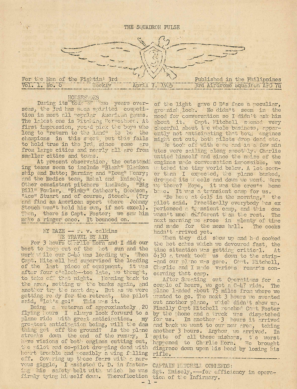 Vol. 1. No. 6 Weekly April 7, 1945 3rd Airdrome Squadron APO 74