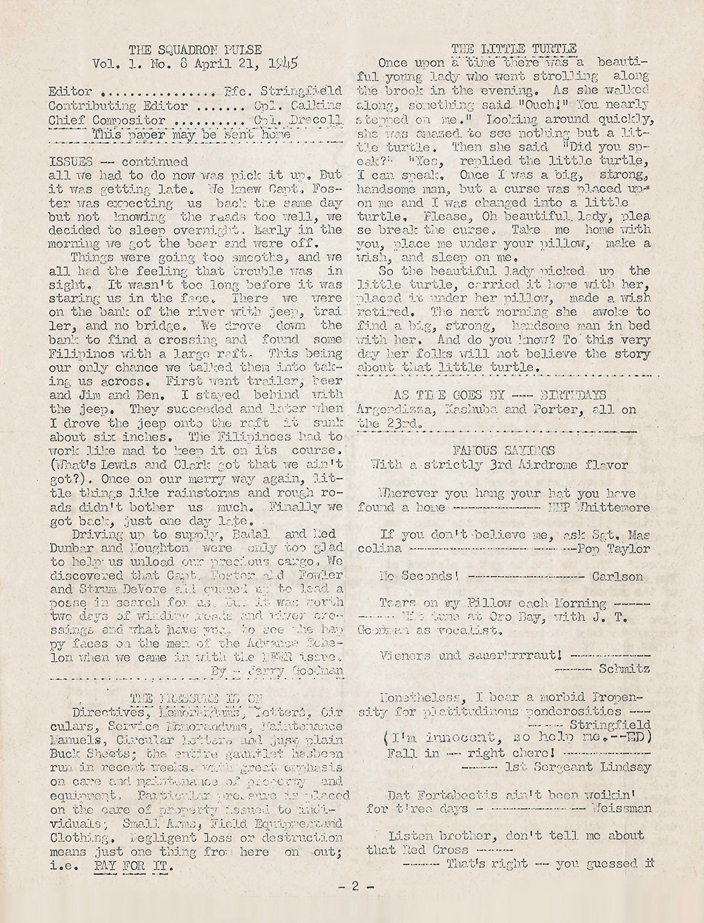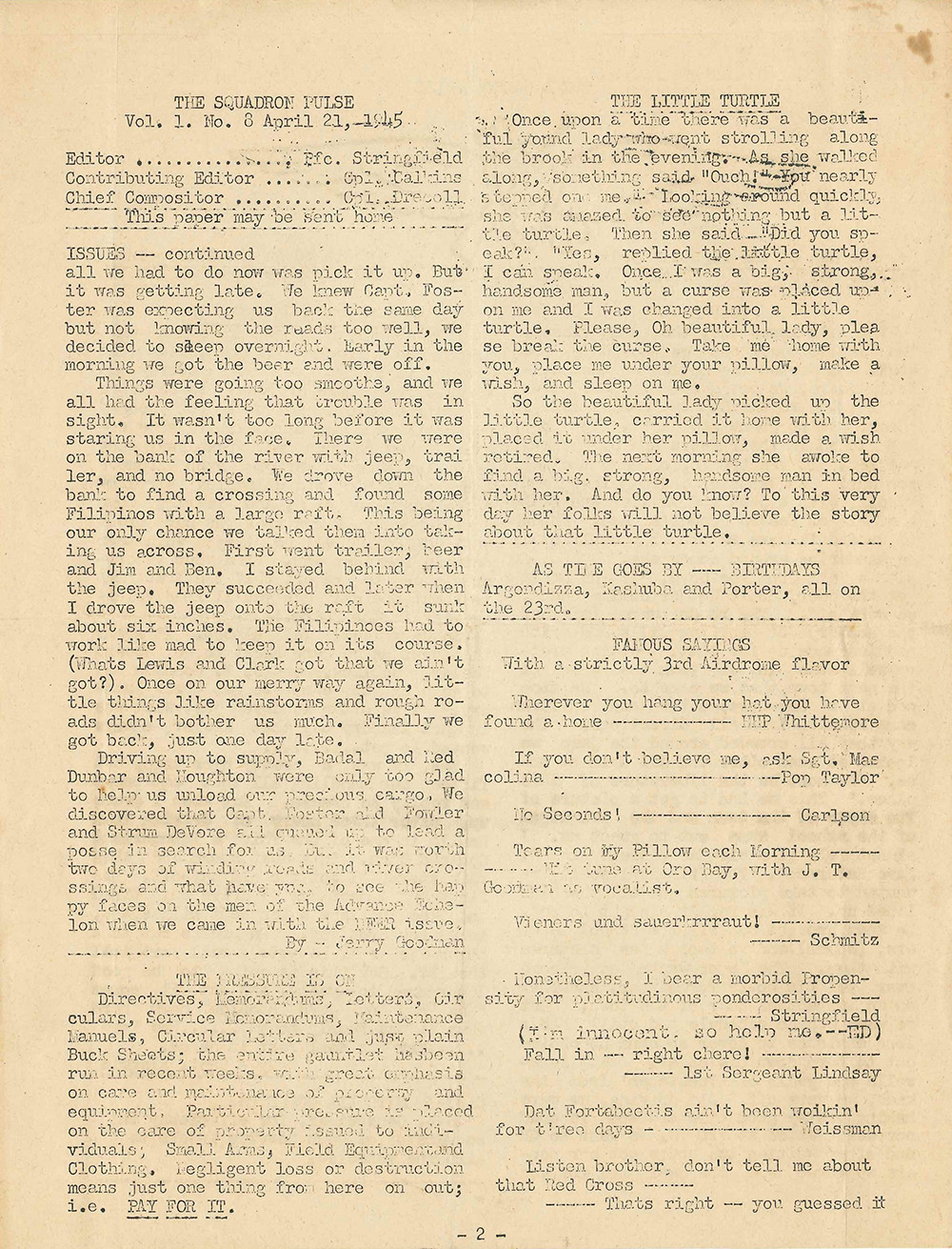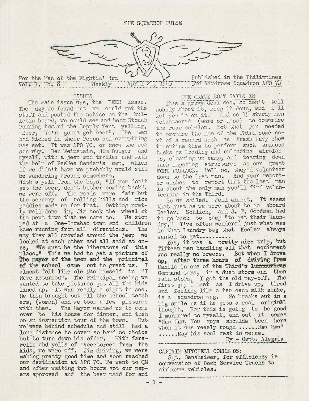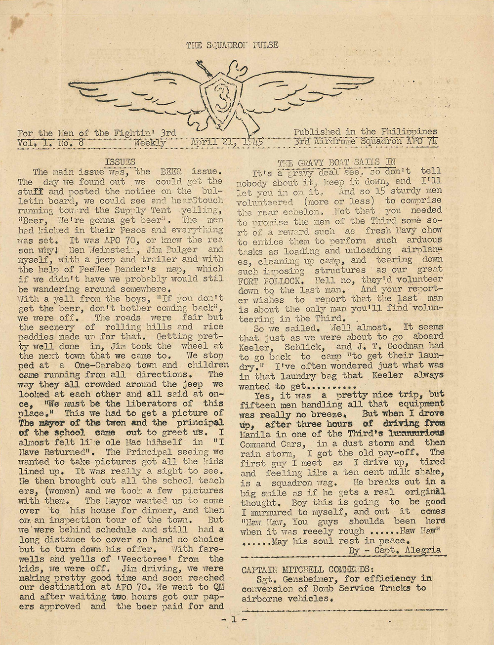 Vol. 1. No. 8 Weekly April 21, 1945 3rd Airdrome Squadron APO 74.