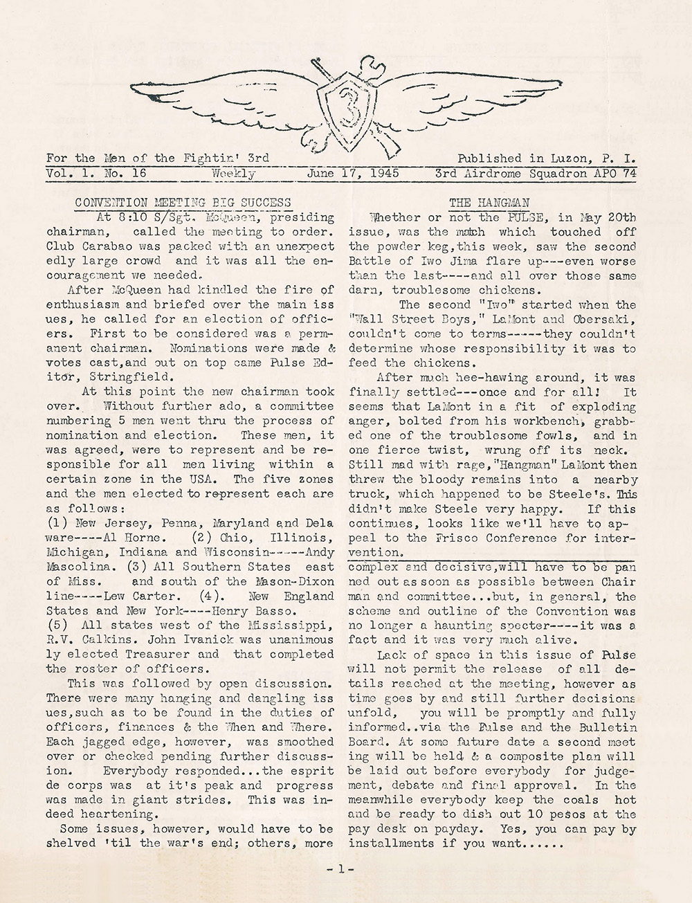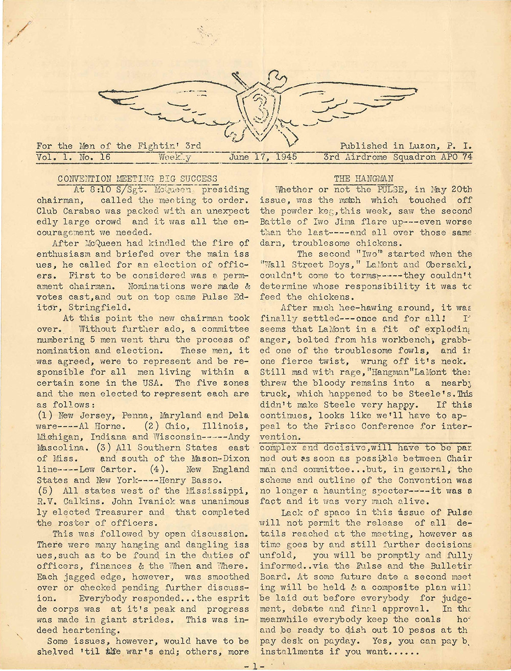 Vol. 1. No. 16 Weekly June 17, 1945 3rd Airdrome Squadron APO 74