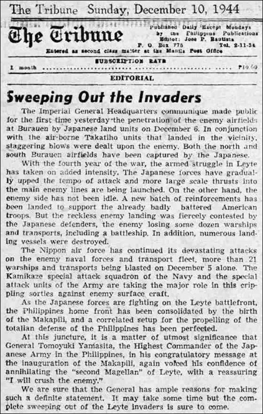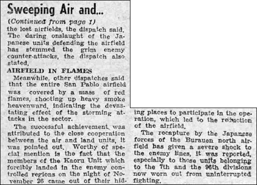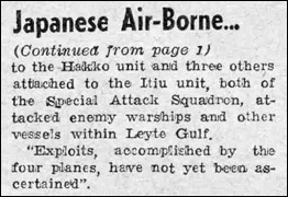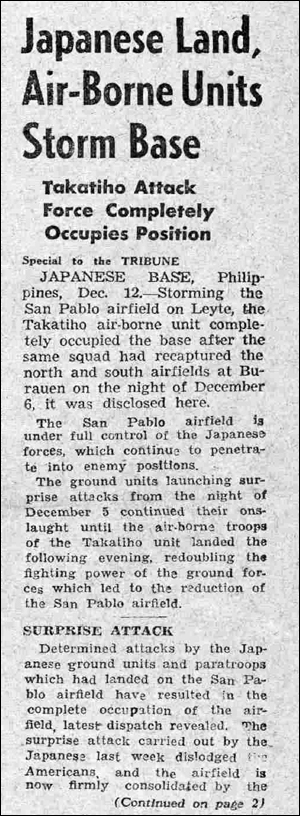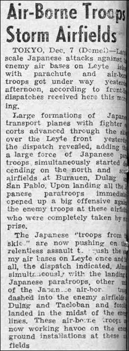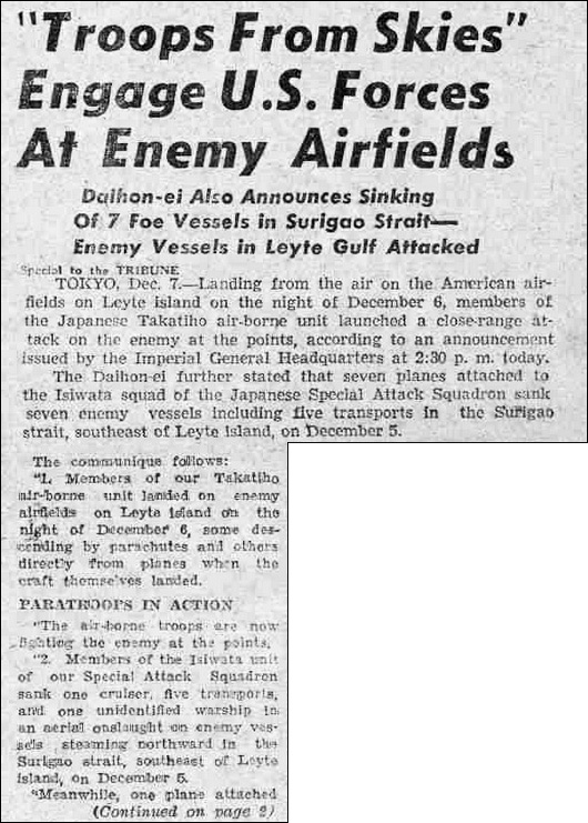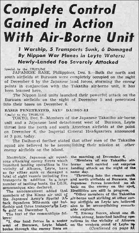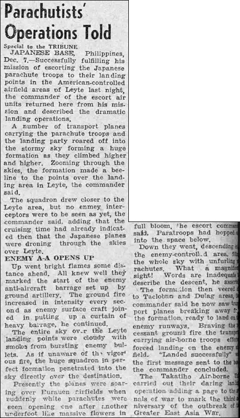 "Other members of the Takatiho air-borne unit striking at other enemy airfields on Leyte are believed also to be accomplishing remarkable exploits.