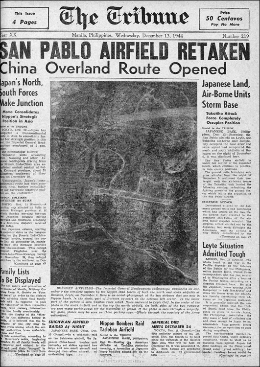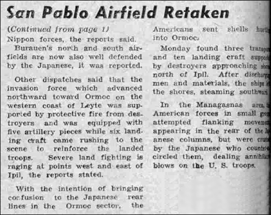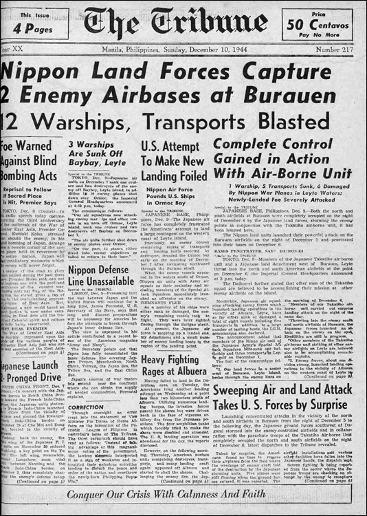"Thrusting into the enemy south and north airfields at Burauen, the Japanese forces launched an attack on the enemy on the spot. Hostilities are still in progress.