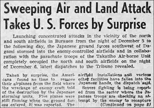The Nippon land units launched their powerful attack on the Burauen airfields on the night of December 5 and penetrated into their bases on December 6.