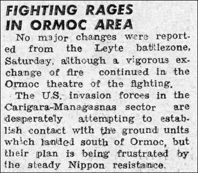 "2. Enemy forces, about one division strong, launched landing operations in the vicinity of Albuera on the western coast of Leyte Island on the morning of December 7.