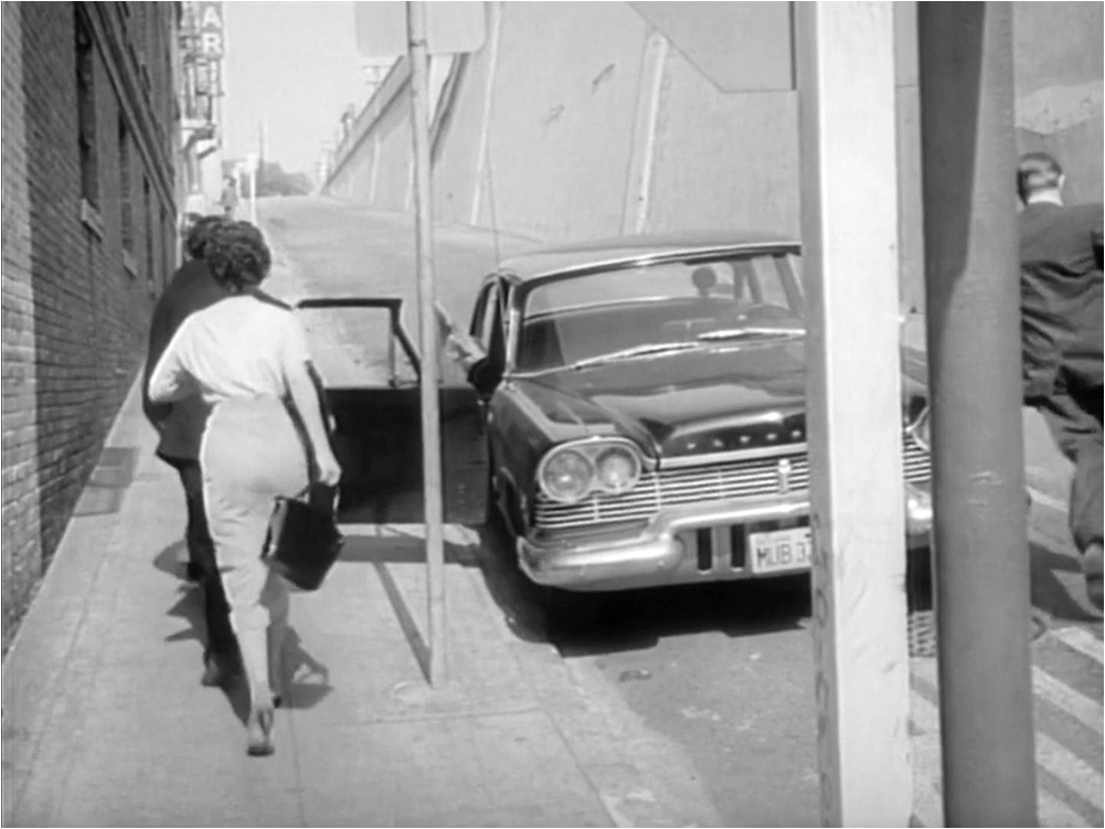 Looking up lower Hope Street from Third in Stakeout on Dope Street. The western end of the Third Street tunnel is to the right, out of frame.