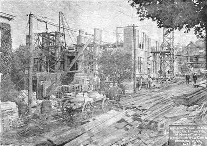 | Oglebay Hall is under construction on October 15, 1917, replacing the Agricultural Experimental Station. |