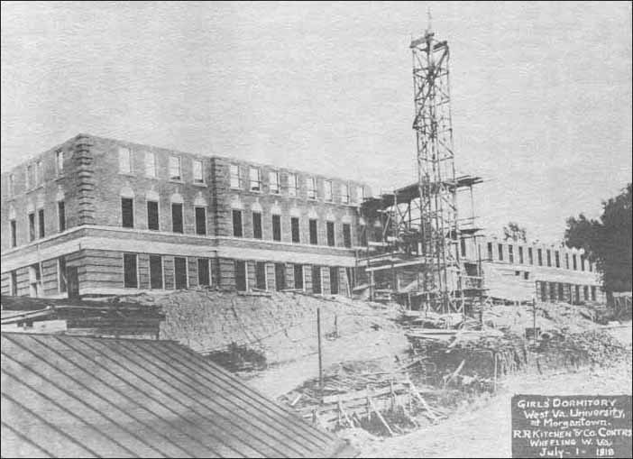 | Excavation begins on the north wing of Woodburn Hall in 1898. Martin Hall is in the background. |