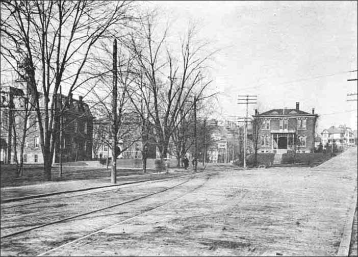 Looking west toward Woodburn Circle around the turn of the century.