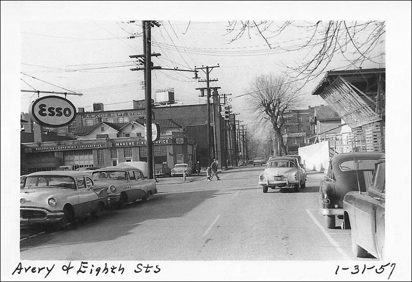 Looking west on Eighth Street from Avery in 1957.