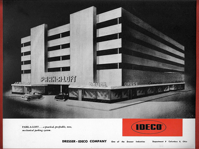the famous white elephant, the Park-A-Loft, which was later torn down. On the right is the