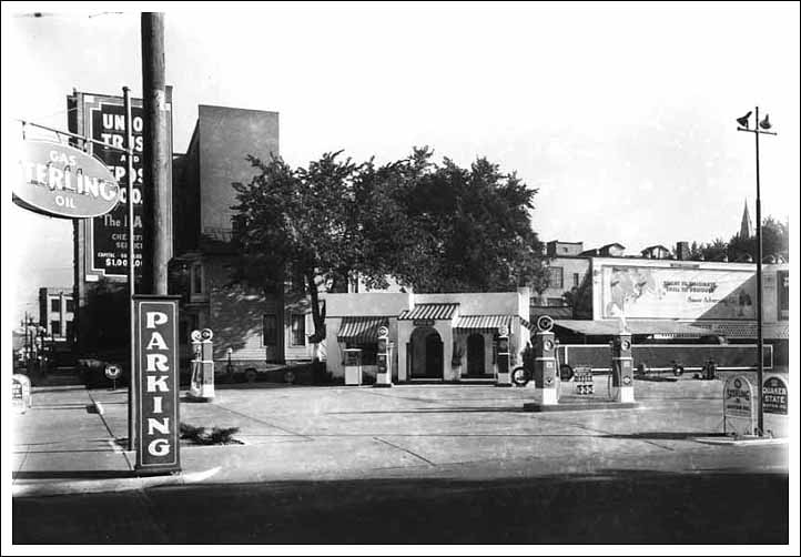 Pure Oil had a gas station at the northwest corner of Fifth and Avery in the 1930s. |