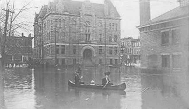 the courthouse and court square during the 1907 flood.