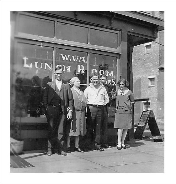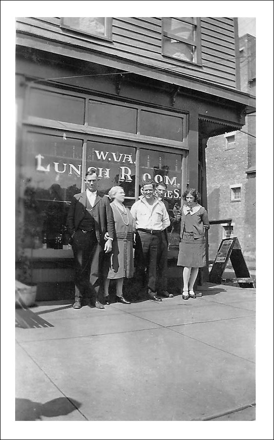 | Sometime in the 1920s, members of the Hedges family stand outside their West Virginia Lunch Room at 400 3rd Street, at the corner of Avery Street. The restaurant was located inside the West Virginia Hotel, which offered furnished rooms to workmen from surrounding factories, such as the sprawling Parkersburg Mill Company next door, on Green Street between Second and Third. (Courtesy of Don Hedges.) |