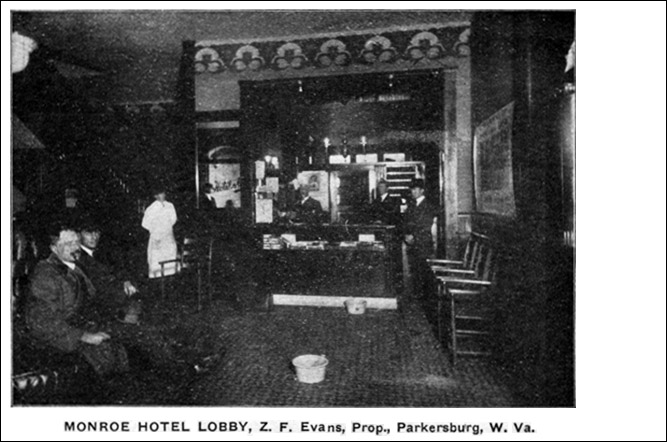 The lobby of the Monroe Hotel in the early 1900s.