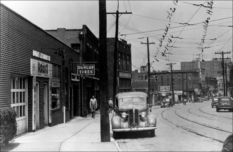 Looking east toward Lynn Street in the 1940s. The white building in the middle of the